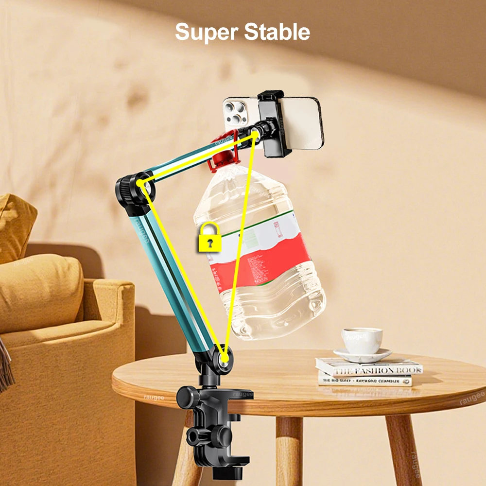 360° Adjustable Lazy Cellphone Holder | Desktop & Bedside Clamp for Live Recording
